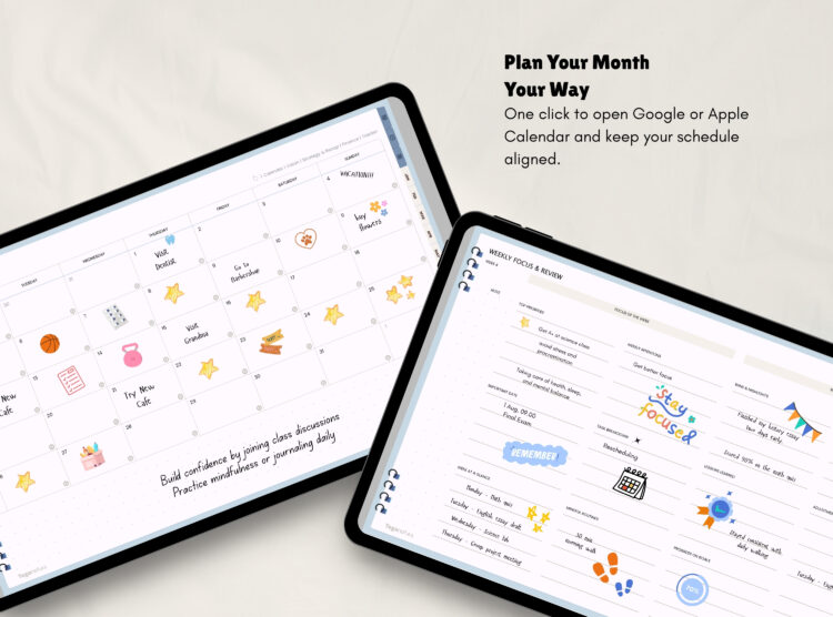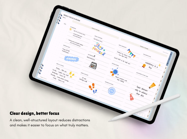Weekly & Monthly Layouts – plan ahead with structured weekly and monthly views.