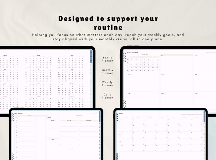 Stay organized and inspired throughout 2026! This digital planner is designed for GoodNotes, Notability, iPad, and Android tablets, with a clean minimalist style and fully hyperlinked navigation. Whether you’re planning your daily tasks, tracking finances, or setting long-term goals, this planner gives you everything you need in one place.